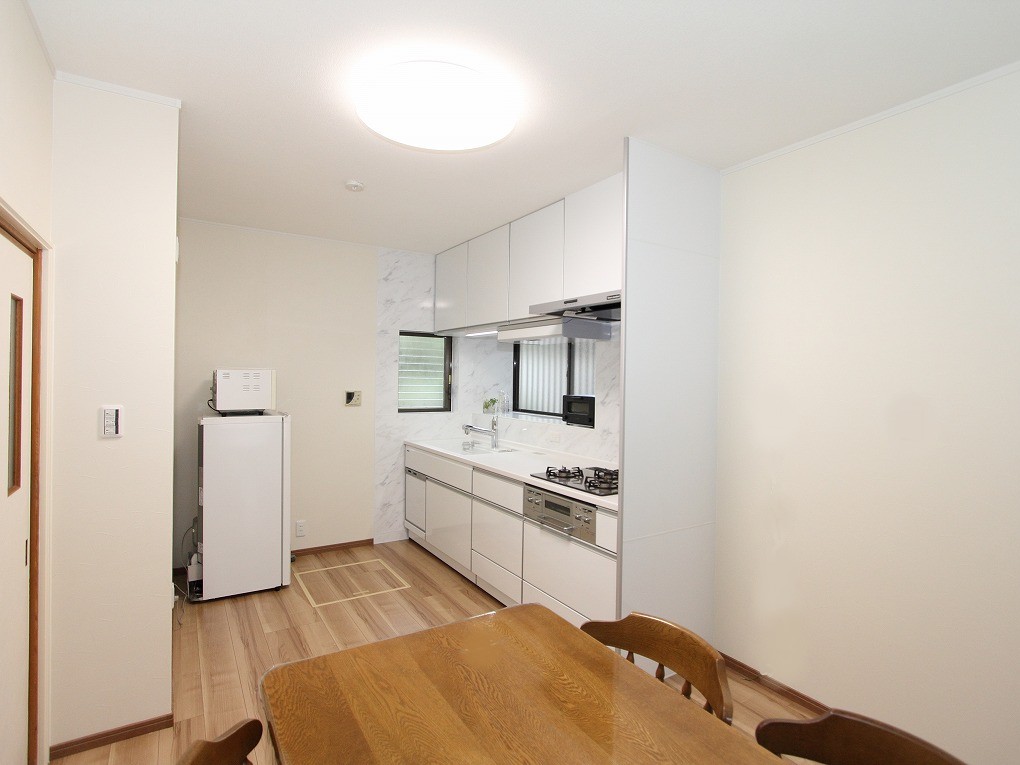 もともとL型だったキッチンをI型に変更し、空いたスペースにはお風呂を拡張しました。