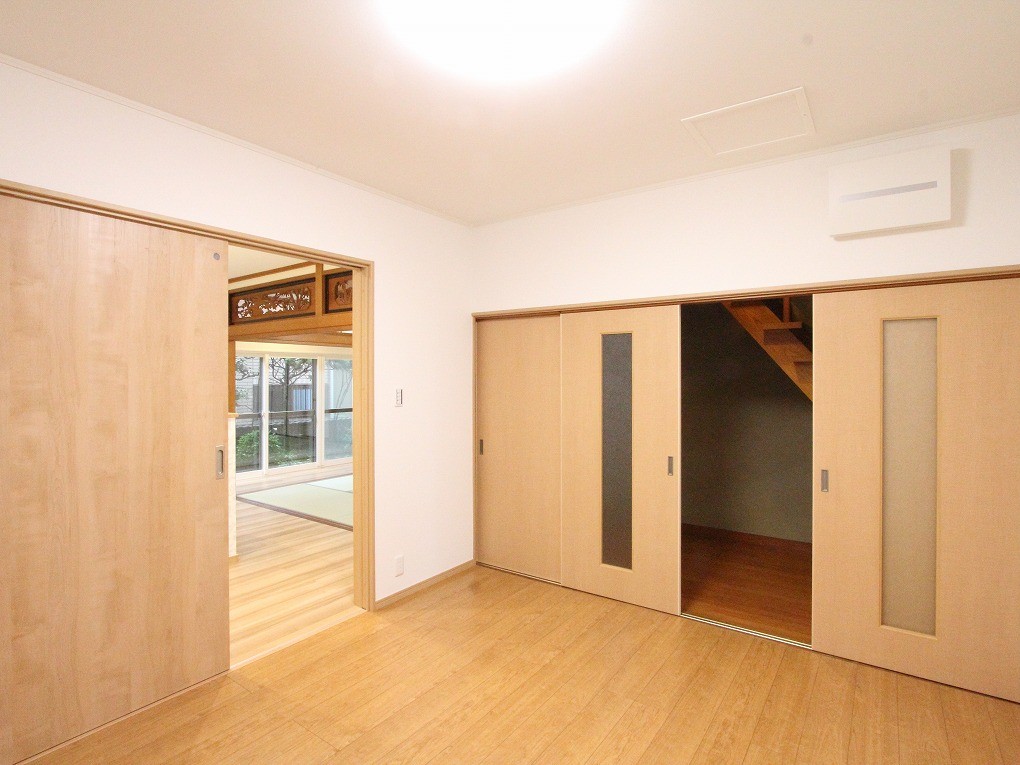そこで、立派な欄間を生かしながら、明るい南面にLDKを配置しなおしました。また、お子様方がまだ小さいことから、今現在だけでなく5年後、10年後の暮らし方を考えて、柔軟に部屋の持つ役割を変えることのできる納戸スペースを用意。ご家族が多くてもいつもすっきりと片付いた、ストレスフリーな家になるようプランニングしました。
