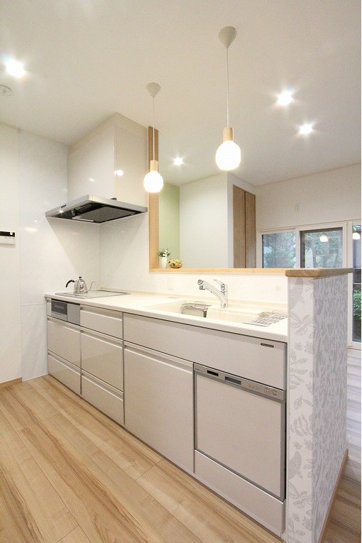 壁付だったキッチンは、料理中もお子様たちの様子を見守ることのできる対面キッチンへ。
