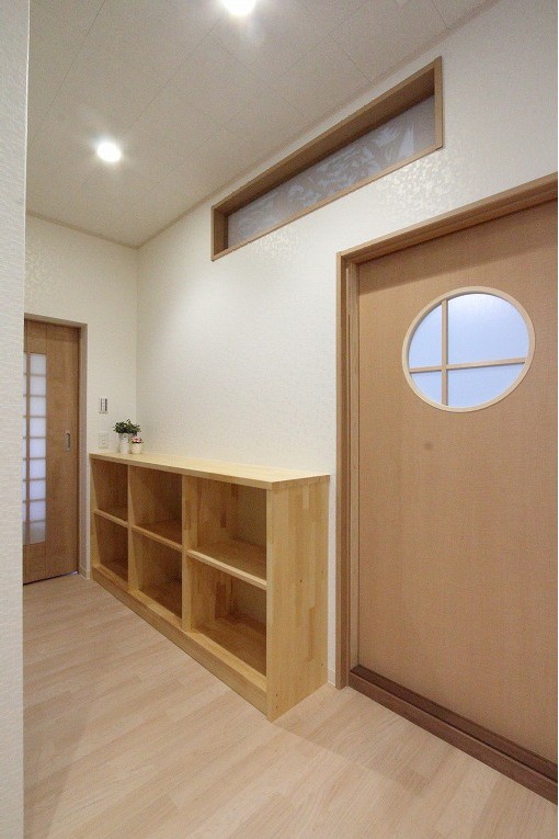 家族用玄関を入ったすぐ先にはランドセルを置ける棚。