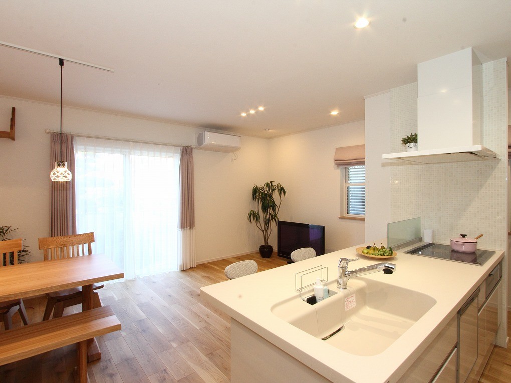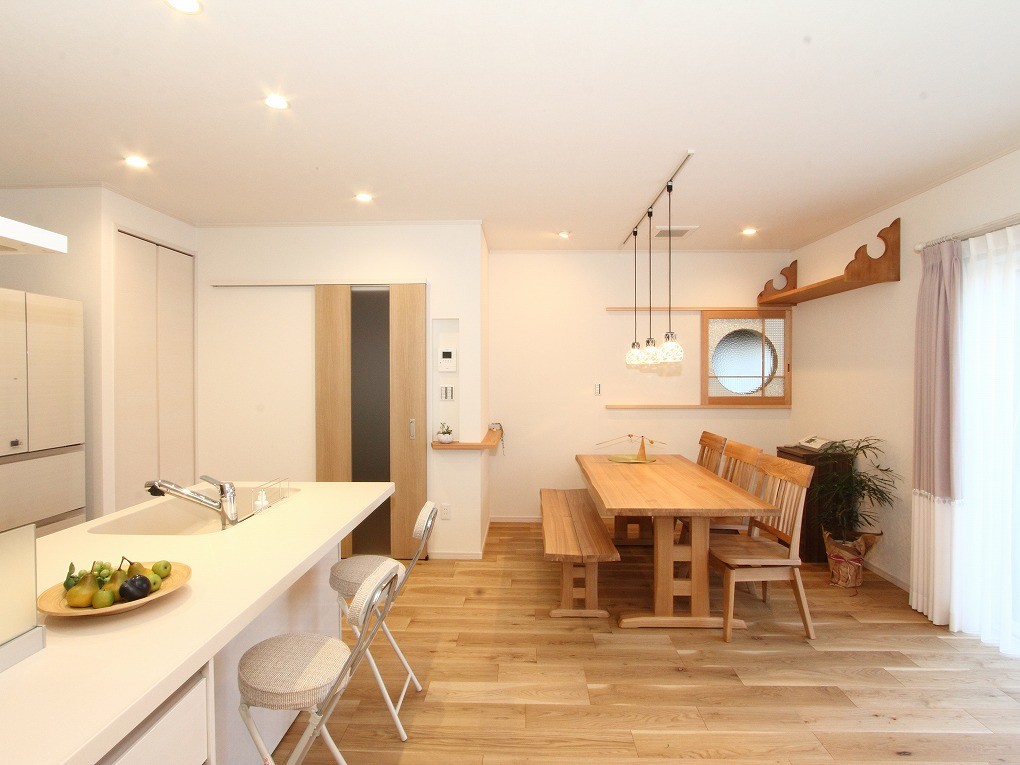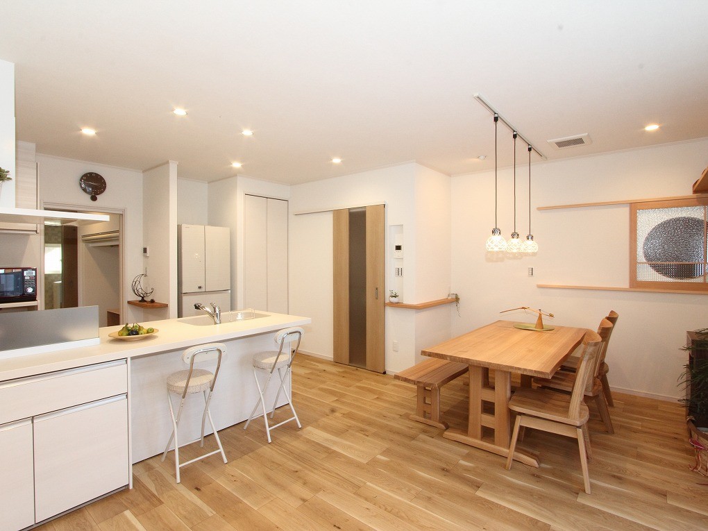LDKは白を基調に無垢の素材感が活かされた心地いい空間に。
