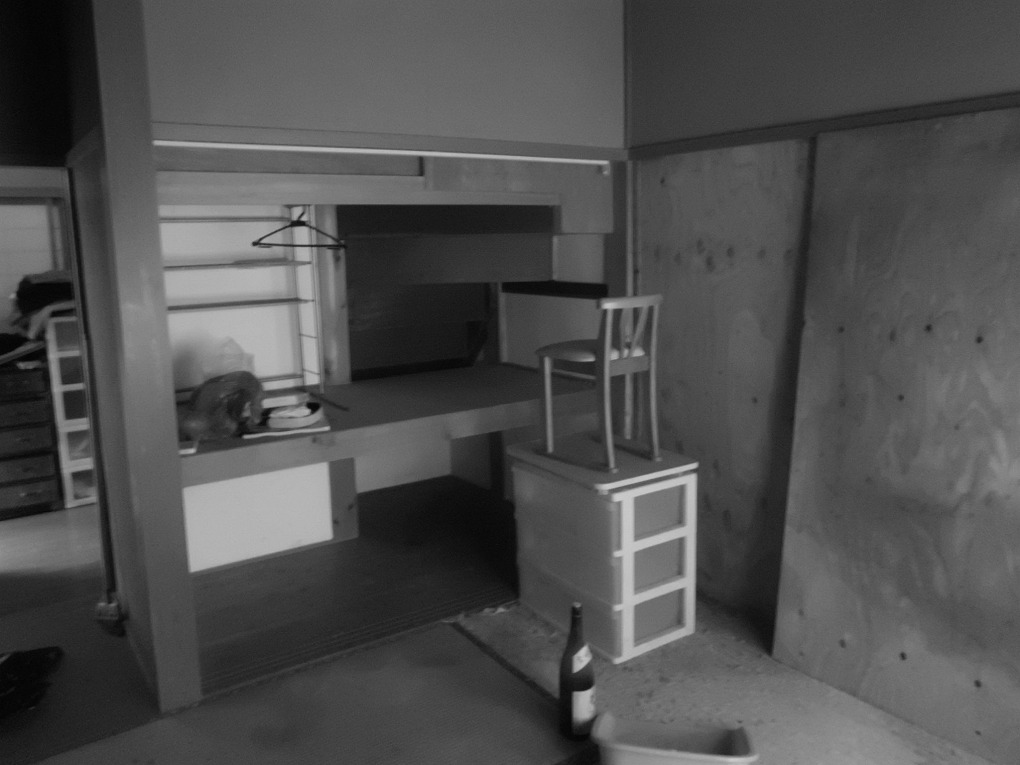 表からは見えませんが、換気扇の裏側には既存の柱をうまく利用したパントリーが。買い置きの食材だけでなく、台所雑貨やエコバックなどを見せずに収納できる便利な場所になりました。