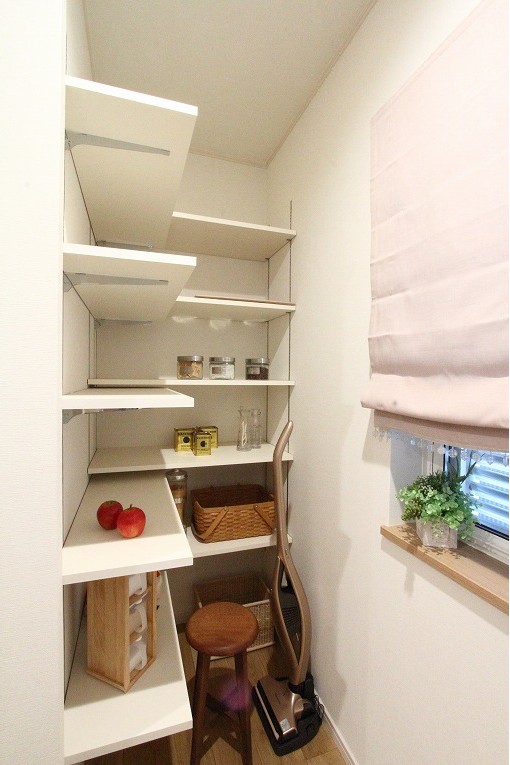 キッチンに設けたパントリーは、小さいながらも収納力抜群!