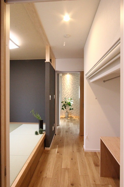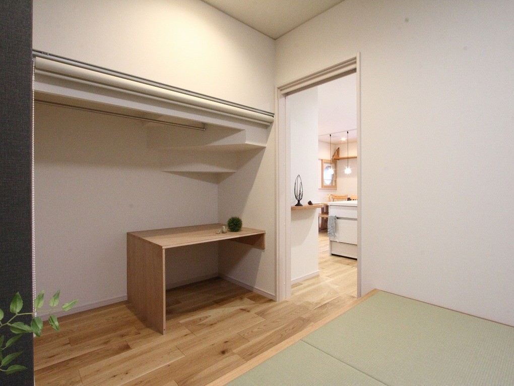 キッチンから水廻りまで通り抜けられる動線の間には、和室を設けました。