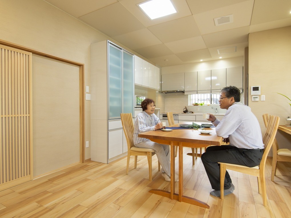 田畑に囲まれたのどかな環境の中に建つN様邸は、現在、N様ご本人とお母様の二人暮らし。