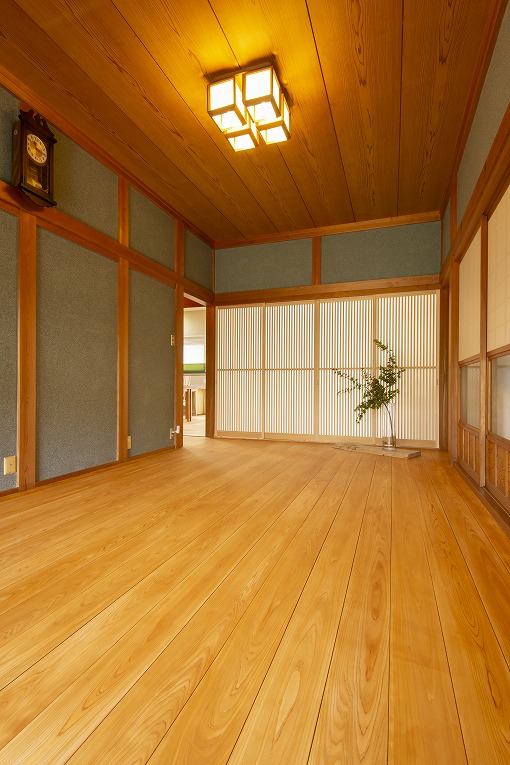 玄関ホールや廊下に使われている桧の床は、お施主様のお祖父さまが植えた桧をつかっています。