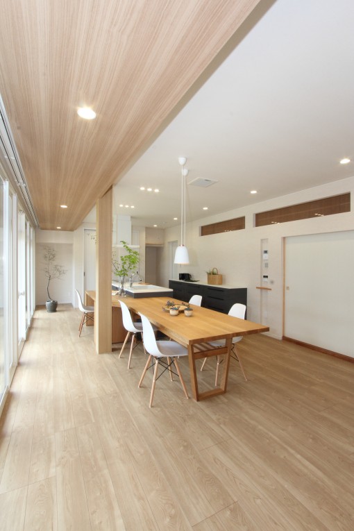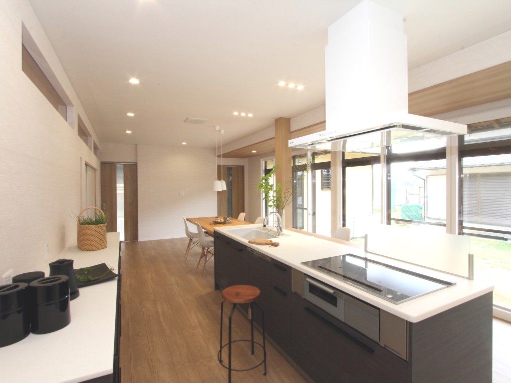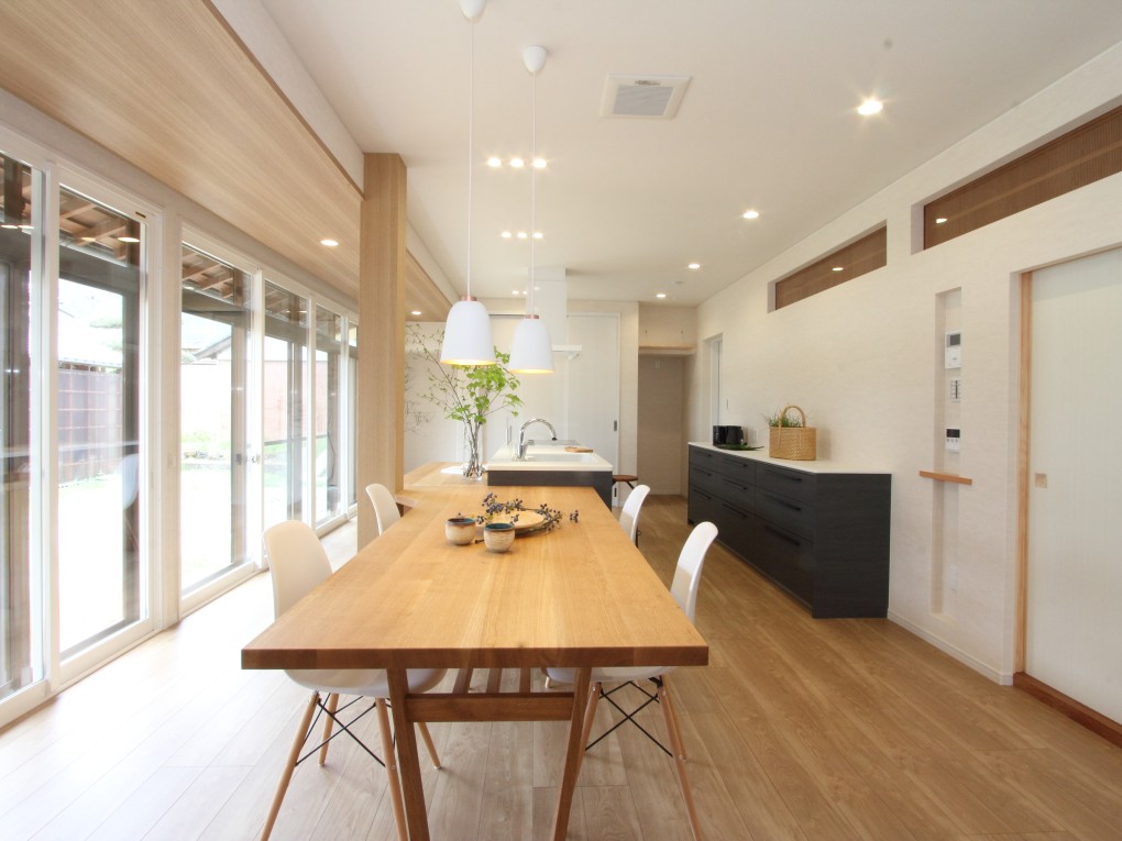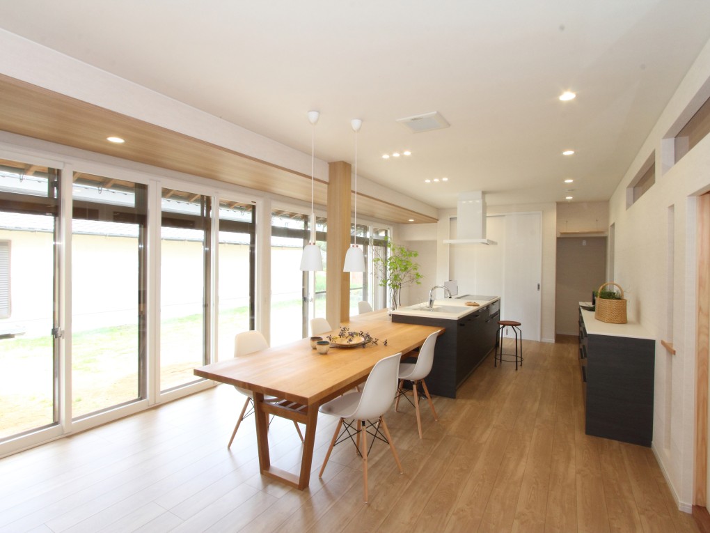 縁側を取り込んだダイニングキッチンは家の中心に。
