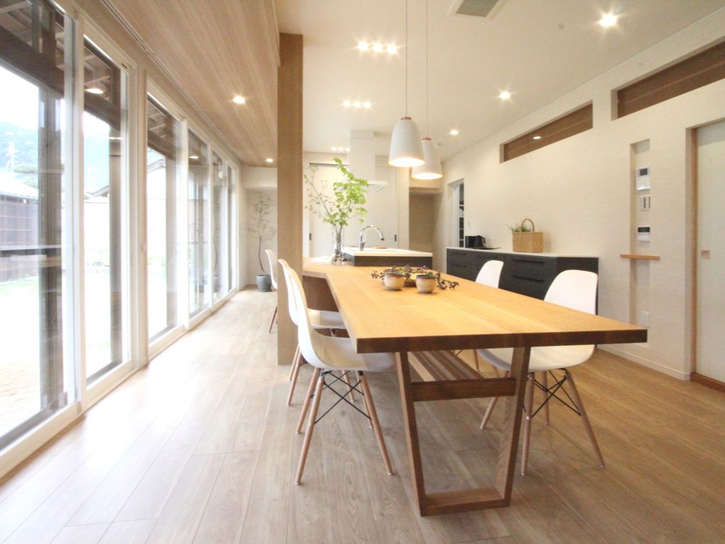 南向きの縁側を取り込んだダイニングキッチン。