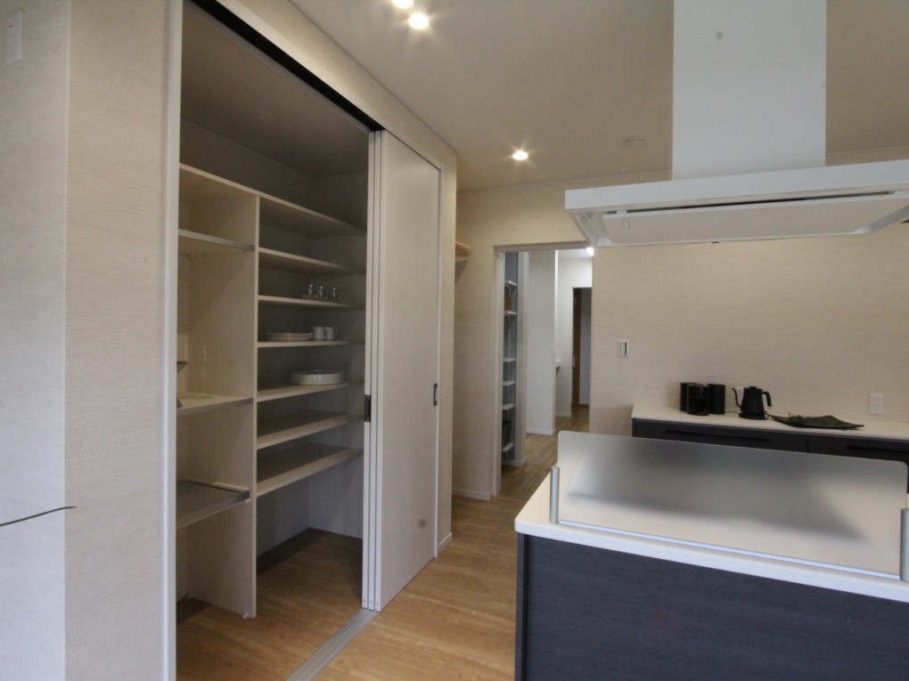 また、隣接する玄関との間の空間には、パントリーを。重たい荷物も、短い動線で収納でき、キッチンとの距離も近いので使い勝手抜群です。