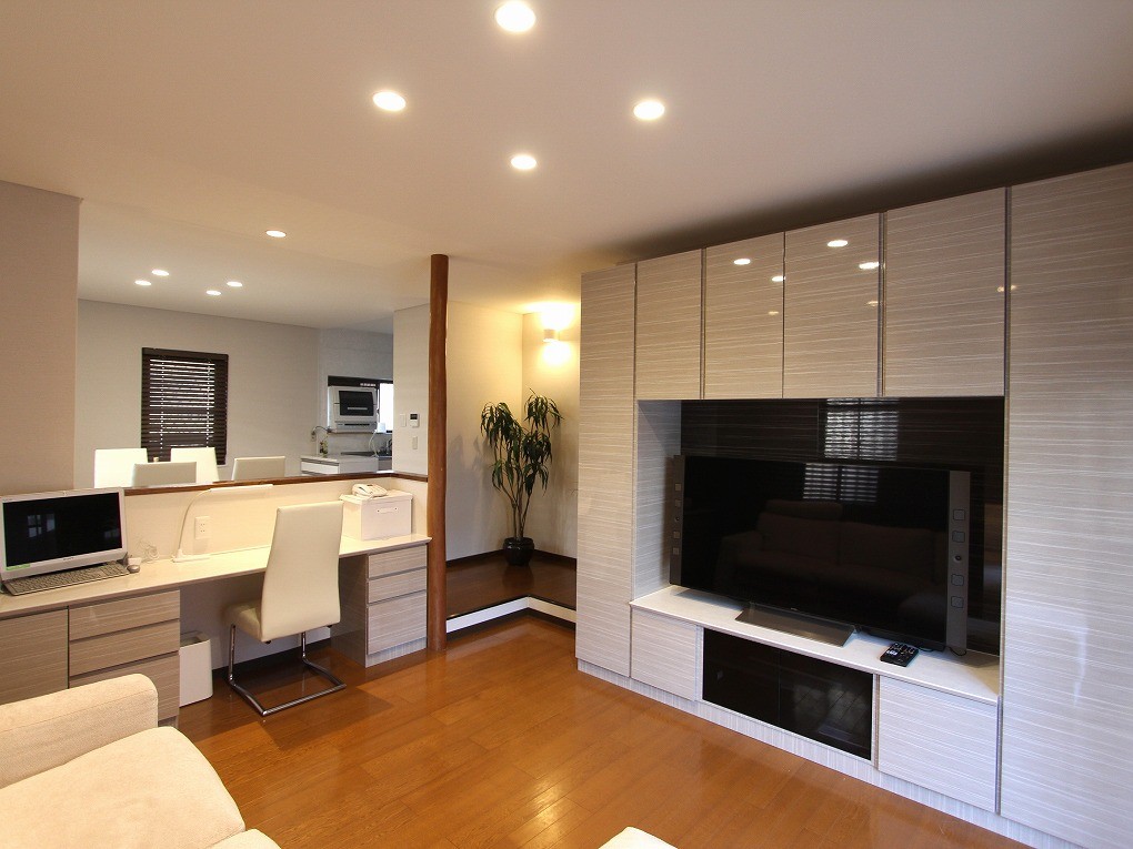 施工事例080 【香芝市】収納不足を解消!オーダー家具とエコカラットで叶える理想のモダン空間