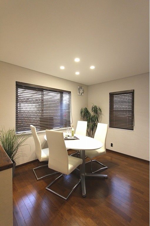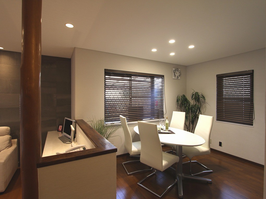こちらも窓にはウッドブラインドで、西日の調整と景観の調整を。