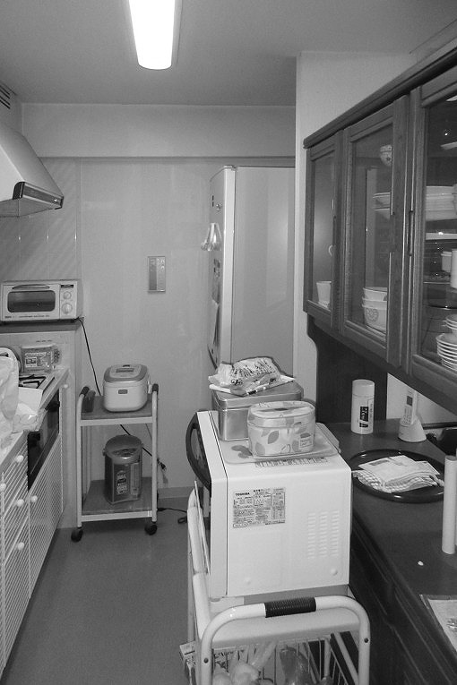 居室内に設置した洗面化粧台は、介助しやすい高さに調整できるTOTOの座ドレッサー。居室内に配置することで、車いすの取り回しや、位置取りの調整にもスペースがとりやすくなります。