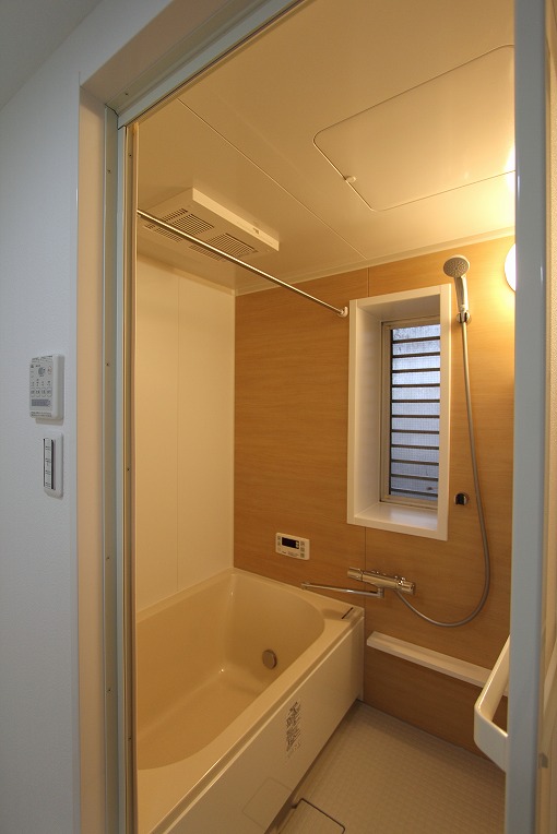 お風呂は、リクシルのマンションリフォーム用システムバスルーム『リノビオ』1216サイズ。