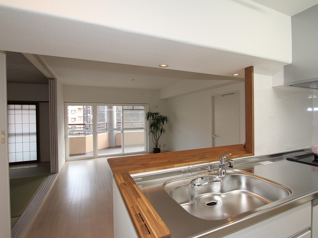 襖で仕切られていたLDK横の和室ドアは、洋室にも似合うデザインの引き込み戸に変更。