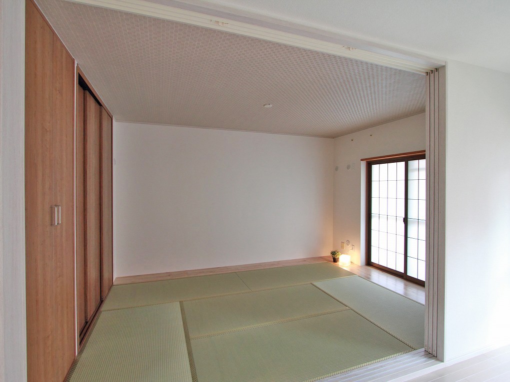 襖で仕切られていたLDK横の和室ドアは、洋室にも似合うデザインの引き込み戸に変更。壁面にある戸袋に扉が収まるので、扉を開ければ壁に隠れて圧迫感がなく空間がすっきりとした印象になります。