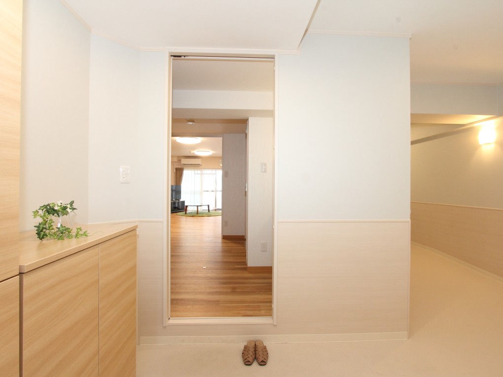 また、構造上どうしても動かせない柱やパイプスペースの横には、あえて「棚」を造作。お出かけ前に必要なマスクや虫除け、あるいはリハビリで作った思い出の作品を飾るスペースとして活用しています。「不自由を補う」だけでなく「暮らしを彩る」工夫を忘れません。