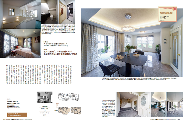 「躯体は触らず、今ある条件の中で高級感のある上質で優雅な住まいを実現」P48、P49に掲載されてます。