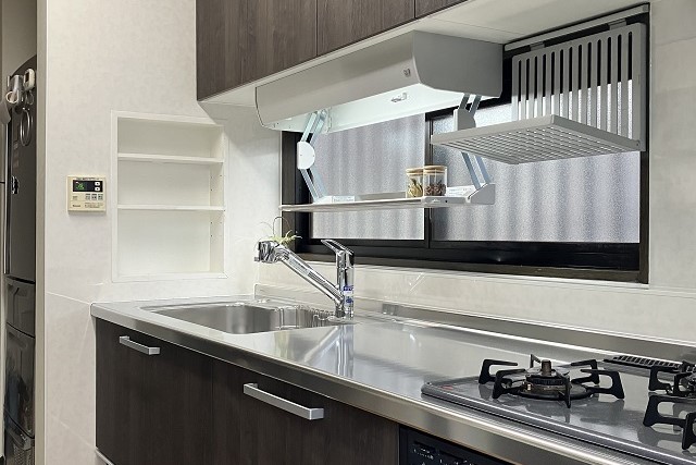 リビングからの動線・ゴミ出しの動線・物干しの動線を考慮したステップも設置し、生活感を隠しながらも使い勝手のよいお庭が完成しました。