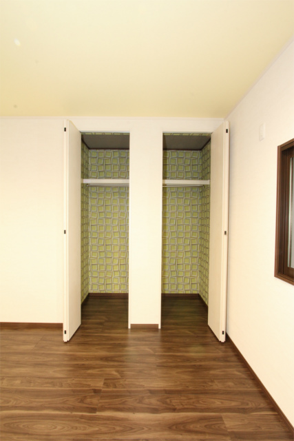 (写真右)扉は周りに合わせた白いお色目ですが、扉を開けるときれいなグリーンの壁紙が現れます。収納にもこだわりたくなりますね。
