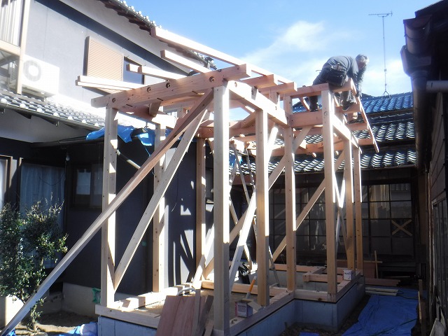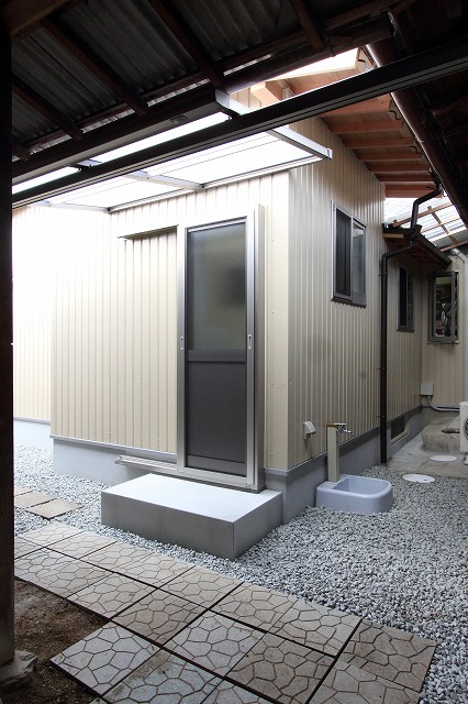 中庭の樹木を撤去して、お風呂と脱衣室兼洗濯機置き場を増設しました。