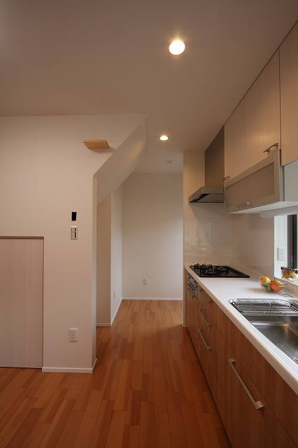 1階食堂 廊下をとりこみ収納面も充実させ、広さを確保した。