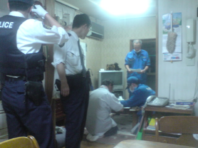 まず、警察官2人、次に鑑識さん2人、また、警察官1人、今度は刑事さんが3人。