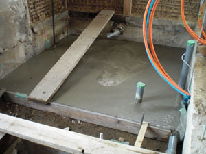 基礎の天端(改修部でガタガタになっている部分・増築部分)には、水平にするためのレベラーという材料を流してもらいました。