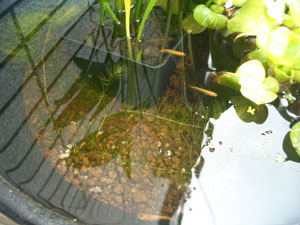 最近、睡蓮鉢でヒメダカを飼い始めました。